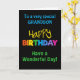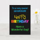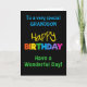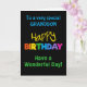 A colourful Birthday Card for a Grandson, with brightly coloured lettering on a black background, the word 'happy' in yellow and the word 'birthday' in rainbow colours.
