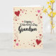 This Valentine's Day card features a soft creamy yellow-beige background with a gentle fade that makes the center feel warm and calm. In the middle, the message reads “Happy Valentine’s Day Grandson,” and it’s surrounded by scattered hearts. The hearts vary in size and color, with deep red hearts mixed with lighter rose-pink ones. Some hearts have thin curling lines attached, like little swirls that loop and curl around the page and point your eyes back to the words. “Happy Valentine’s Day” appears in a simple, easy-to-read print style, while “Grandson” is larger and written in a flowing cursive style, making it stand out. Small heart shapes are used as tiny details in the lettering, adding an extra touch of love ❤️. It feels meaningful because it’s sweet and direct, and it lets your grandson know he’s truly cared about 🥰—perfect for sharing Valentine’s Day sentiments.