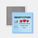 This magnet will be an excellent gift for your Granny. It says "Granny's Kitchen - Homemade Meals served with love." The background is light blue gingham.