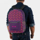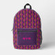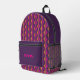 Add some purplelicious colour to your day with my Grape Expectations backpack. This retro pattern has big 1970s vibes and was inspired by the disco era with a groovy purple colour palette featuring dark grape purple, bright purple, magenta, golden yellow and orange in a funky hourglass shape. The front pocket is ready to be personalized with you monogram in bright pink letters.