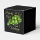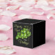 Decorate your party decor with this eye-catching grapes favour box. This design prominently incorporates vivid green elements. This favour box is easy to personalize by changing the text and customize by changing the background to a colour of your choice.