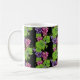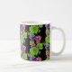 This ceramic coffee mug is shown with a wine lovers grapes print design.