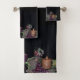 This set of black background bath towel set is a wine, grapes and candle theme print and with other decor could make a restroom very coordinated and in style.