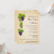 A grapevine with four clusters of wine grapes align along the left side of this invitation geared towards a wine tasting event or cocktail party. The grapevine snakes behind the grapes against a parchment background. The parchment is repeated on the reverse along with the grape vine to any extra information or the text can be deleted to leave the back black with just one bunch of grapes. Available with matching products.