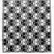 A simple black and white geometric tiled flower pattern.