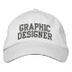 "GRAPHIC DESIGNER" embroidered text on hat.
