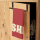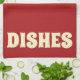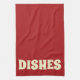 Graphic Dishes kitchen towel. Background colour and text can be customized