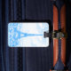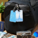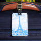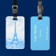 Eiffel Tower in blue and white . Graphic design by Alma Wad based on a vintage image .You have to customize the other side to get your own personal bag tag .