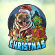Graphic Illustration Christmas Pug Window Cling