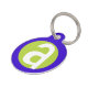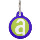 This round pet tag features a graphic lowercase letter A initial on a royal blue and green background. Fully customizable! Add your dog's personal info on back, or delete if you prefer.