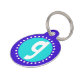 This round pet tag features a graphic lowercase letter G initial on a royal blue and aqua background, surrounded by a circle of white dots. Fully customizable! Add your dog's personal info on back, or delete if you prefer.