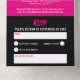 Bold simple graphic bright hot pink, black and white photo template all-in-one 40th birthday invitation. Personalize this detachable milestone birthday invitation with your own birthday party event details, and up to six different photos of your birthday girl. Invite comes with a simple RSVP detachable reply card where you can also request a song to dance to or ask for any dietary or special requirements if required. Simple three photo circles for your now and then photos on both sides there are up to six different photos you can add. Other colours and matching items are available. © Original design by Sarah Trett for www.mylittleeden.com on Zazzle.