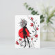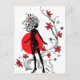 Graphic silhouette of a woman on floral background postcard