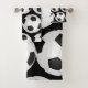 Bath towel set with bold soccer ball pattern in black and white . You can change the background colour /add monogram ,text ,logo . From the store of alma's design . Ideal gift for soccer lovers /players/for a whole team.