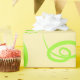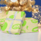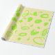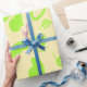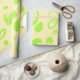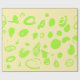 This hand drawn wrapping paper presents a flat yellowish white surface and different kind of organic lime green spots and lines on it.