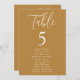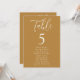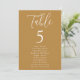 Tableau des sièges mariages moderne avec "Table" affiché dans un script blanc avec le numéro de table et les noms d'invités indiqués ci-dessous sur un arrière - plan ocre. Le dessin se répète à l'arrière. Pour commander le tableau des sièges du numéro de table, modifiez chaque carte avec le numéro de table et les noms des invités et ajoutez-la à votre panier. Conçu pour coordonner avec notre collection Simple Script mariage.