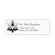 L'illustration graphique qui embellit ce étiquette facile à personnaliser présente quelques motifs de chat linéaires dans une pose détendue entourée de feuilles et de fleurs en silhouette noire.