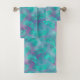 Feuilles Turquoises tropicaux sur arrière - plan turquoise & violet dessiné graphiquement.