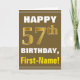 Ce simple design de carte de voeux sur le thème de l'anniversaire présente un voeu d'anniversaire chaleureux comme "HAPPY 57th BIRTHDAY, First-Name!" sur le devant, en texte gras sur un arrière - plan de couleur marron. Le numéro d'anniversaire a un look de couleur imitation or. Le nom sur le devant peut être customisé. L'intérieur comporte un message d'anniversaire qui peut être customisé. Une carte de voeux comme celle-ci pourrait être une façon amusante d'offrir des voeux d'anniversaire à quelqu'un qui célèbre son cinquante-septième anniversaire. [~Z0000281]
