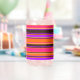 Ajoutez une éclat de couleur audacieuse à votre collection de produits à boire grâce à cette boîte de verre rayé vibrante. Doté de bandes frappantes d'orange, de magenta et de violet, ce design est parfait pour siroter des boissons glacées dans le style. Que ce soit pour la maison, le bureau ou les réunions en plein air, il fait une déclaration amusante et artistique.
