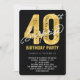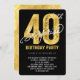 Faux Gold Foil Surprise 40e carte d'invitation pour la fête d'anniversaire.