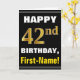 Ce simple design de carte de voeux sur le thème de l'anniversaire présente un voeu d'anniversaire chaleureux comme "HAPPY 42nd BIRTHDAY, First-Name!" sur le devant, en texte gras sur un arrière - plan de couleur noire. Le numéro d'anniversaire a un look de couleur imitation or. Le nom sur le devant peut être personnalisé. L'intérieur comporte un message d'anniversaire personnalisable. Une carte de voeux comme celle-ci pourrait être une façon amusante d'offrir des voeux d'anniversaire à quelqu'un qui célèbre son quarante-deuxième anniversaire. [~Z0000275]