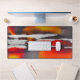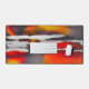 Ce tapis de bureau moderne et coloré, aux tons rouges et jaunes, aux tons gras, est décoré de noir et blanc. Ce tapis saisissant a une esthétique moderne contemporaine et est l'ajout parfait à n'importe quel bureau, bureau, bureau, dortoir ou tanière.