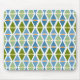 This mouse pad has a mid-century modern design of triangles whose bottoms have been curved, put in pairs with an oval between them. If you like the design but prefer different colours, message me.