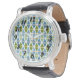 This men's watch has a mid-century modern design of triangles whose bottoms have been curved, put in pairs with an oval between them. If you like the design but prefer different colours, message me.