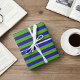 The customizable gift wrapping paper showcases a stunning blend of grass green and dark earth blue colours in a sleek and modern striped design. This versatile wrapping paper is perfect for Father’s Day, birthdays, retirements, housewarming gifts, or for anyone who loves the refreshing combination of blue and green tones.
