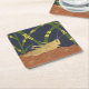 Grasshopper in Green Grass on Blue Background Square Paper Coaster