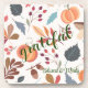 Entertain this holiday with a set of six quality made coasters. Modern Autumn print with "grateful" text ready to personalize; dimensions are 3.8"x3.8". Made with high-gloss plastic and a non-skid cork backing. Easily change the names using the Template provided. See "About This Product" at side for more information. HIGH reviews.