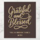 A bistre, dark brown background. Beige, cream coloured text: Grateful and Blessed. Personalize and add your family name and year.