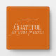The typographic design features the phrase "Grateful for your presence" on a pumpkin orange background. It is elegant and welcoming! Personalize this item or purchase as is.