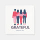 Cute Friendsgiving party napkins in a "Grateful" design featuring pink and blue design of girlfriends standing together with arms around each others backs. Visit our store to see matching invitation.
