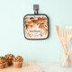 Add charm and festivity to your holiday decor with this "Happy Thanksgiving" pot holder. Featuring the phrases "Happy Thanksgiving," "Thankful," and "Blessings" in elegant, decorative lettering, this trivet is perfect for celebrating the season of gratitude. It not only protects your surfaces from hot dishes but also adds a touch of seasonal cheer to your dining table or kitchen. A delightful accent that invites appreciation and warmth for family and guests.