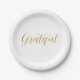Grateful Gold Script Minimalistic Thanksgiving Paper Plate