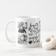 Créez un cadeau personnalisé pour un être cher avec notre tasse photo personnalisée. Le design de la tasse de typographie en noir et blanc présente la citation "Commencer chaque jour avec un coeur reconnaissant" en écriture calligraphie lettrée ornée de swashes et d'une illustration cardiaque. Personnalisez avec six de vos photos carrés préférées en noir et blanc classique. Version couleur également disponible dans notre boutique; ou, utilisez les filtres photo de Zazzle pour changer le réglage photo noir et blanc.