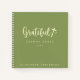Grateful Moss Green Cream Script Sermon Notes Notebook - Minimalist moss green soothing and calming colour palette, feminine design with Grateful word art. Customize with the year and your name.