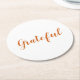 Grateful orange spice and white script calligraphy cute thanksgiving party Paper Coasters.