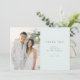 These wedding thank you cards feature a modern and minimalistic design with a balanced layout, showcasing a soft pastel color palette. The left side includes a placeholder for a photograph, while the right side offers a calming pale blue-green background with centered typography. The clean lines and smooth gradients create an elegant aesthetic, perfect for expressing gratitude to guests. With customizable text elements, these cards are ideal for personalizing your post-wedding thank you notes, capturing the warmth and celebration of your special day.