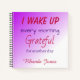A beautiful notebook for displaying your gratitude, this item features lined paper on the inside with a purple ombre background. "I wake up every morning grateful for another day" is written in decorative purple and pink font. The bottom features a place for entering your name. You can modify the inside of the paper with a variety of choices. Personalize your gratitude notebook today!