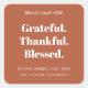 This modern candle label features the uplifting words Grateful. Thankful. Blessed. in bold white typography on a warm terracotta background. Perfect for autumn, Thanksgiving, or holiday seasons, this square sticker is ideal for soy candles, jar candles, or small business packaging. The minimalist design blends rustic charm with modern elegance, making it a versatile choice for handmade candle makers, gift-givers, and home décor lovers. Add a cozy seasonal touch to your products or DIY candle projects with this stylish label.