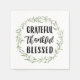 Farmhouse inspired green laurel wreath with "Grateful, Thankful, Blessed".