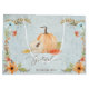 "Grateful Thanksgiving Pumpkins Fall Floral Autumn Large Gift Bag." Soft ash blue texture in the background makes the white and orange pumpkins pop! The Autumn flowers and fall leaves were painted by internationally licensed artist and designer, Audrey Jeanne Roberts, copyright.