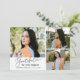 Modern and elegant graduation announcement photo card featuring 3 photos on the front and 1 on the back. The text says "grateful for your support" in script font. Add the graduate's name, information, and message to personalize this card. White.