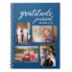 Create your own special gratitude journal with a custom photo collage on a blue background. The words "gratitude journal" are in a white handwritten script font near the top. Your name and the year appears in a simple white sans serif font below it. Personalize it with your custom text and 4 photos in the sidebar.