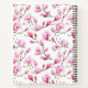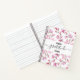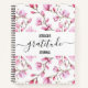 Élégant journal de gratitude personnalisé avec un mignon motif rose magnolia sur arrière - plan blanc et une main lettrant titre de gratitude. Personnalisez avec votre nom et votre texte.