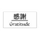 A rubber stamp with Japanese kanji characters for “Kansha” meaning gratitude.