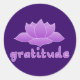 We love this design on a vibrant purple background, but you can choose any colour you like (on the keychains, magnets, buttons, mugs and other products). A soft and strong violet coloured lotus, with the word "gratitude".